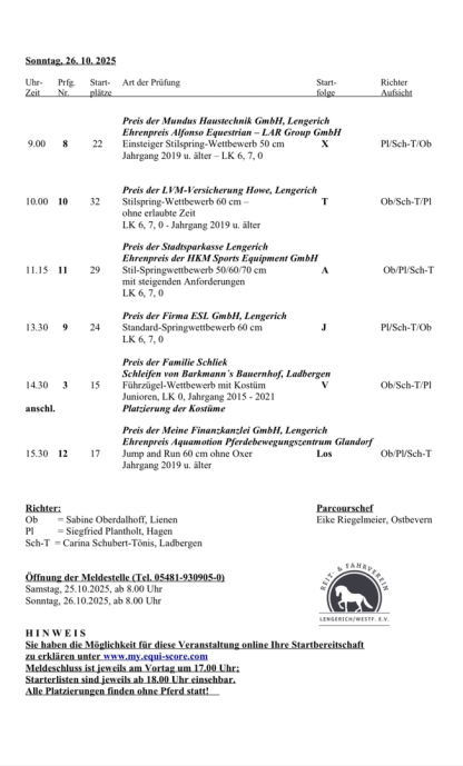 Im Frühjahr und Herbst bietet der Verein an jeweils zwei Tagen Dressur- und SpringreiterInnen ihr Erlerntes zur Prüfung zu stellen.